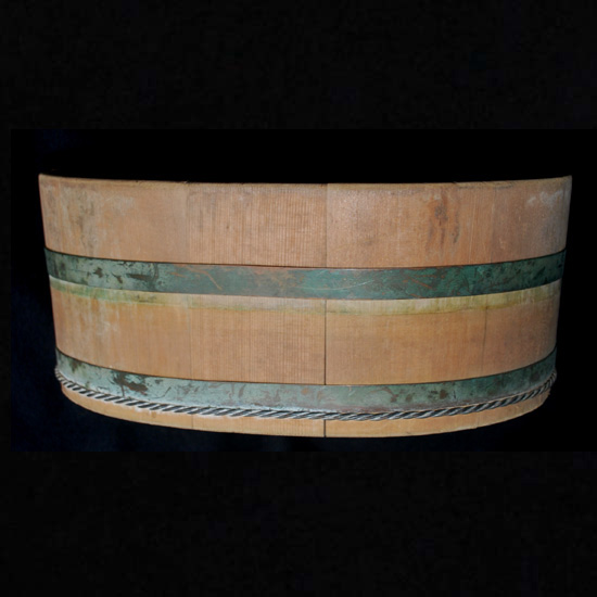 2577 昭和レトロ民芸 高島屋 特級 No .1 たまご型湯桶 今はあまり見る事の無い卵型の湯桶、 裏底に、高島屋のロゴマーク及び、( 特級 ) ( No .1) の焼印が施された当時の高級品です。 厚さ 1 cm 程の板 ( 材種は不明 ) を、銅坂と銅線の箍で絞めてあります。 日本製のUSED品 ◆サイズ◆ ( 外寸最大部分 ) 27 × 21 . 5 × h : 11 p 程 ◆状態◆ 外観上、汚れや傷み箇所が随所にあるも、特に酷く傷んだ箇所はありません。 尚、経年の未使用保管により隙箇所があります。 ( 画像参照下さい ) \ 2000 送料-y80 ![]() ![]() ![]() ![]() ![]() ![]() ![]() ![]() |
