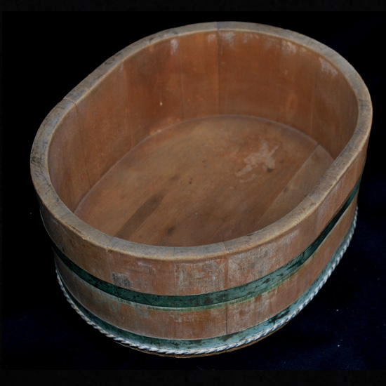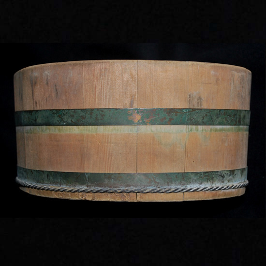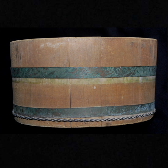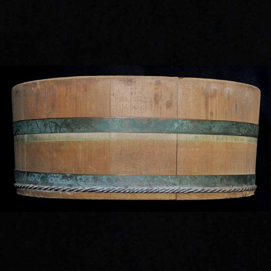 2577 昭和レトロ民芸 高島屋 特級 No .1 たまご型湯桶 今はあまり見る事の無い卵型の湯桶、 裏底に、高島屋のロゴマーク及び、( 特級 ) ( No .1) の焼印が施された当時の高級品です。 厚さ 1 cm 程の板 ( 材種は不明 ) を、銅坂と銅線の箍で絞めてあります。 日本製のUSED品 ◆サイズ◆ ( 外寸最大部分 ) 27 × 21 . 5 × h : 11 p 程 ◆状態◆ 外観上、汚れや傷み箇所が随所にあるも、特に酷く傷んだ箇所はありません。 尚、経年の未使用保管により隙箇所があります。 ( 画像参照下さい ) \ 2000 送料-y80 ![]() ![]() ![]() ![]() ![]() ![]() ![]() ![]() |