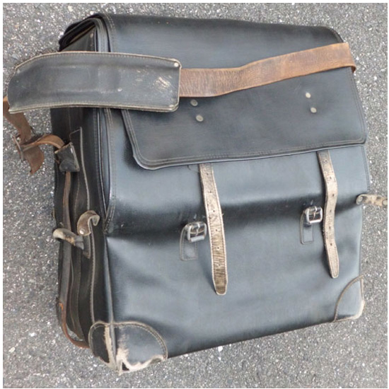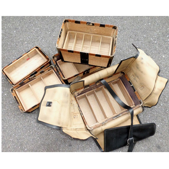合皮カバーに多少傷み箇所があるも、他は柳行李を含めまずまず良い状態です。