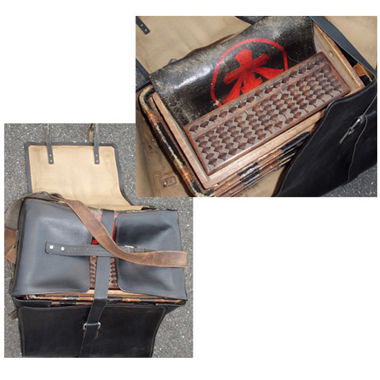 皮縁柳行李五段(各桐板製の仕切り箱付)が収められています。
