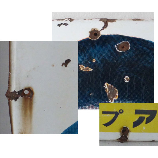 縁などに錆による劣化個所、全体に少し色あせががあります。