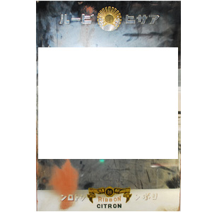 アサヒビール / リボンシトロン 掛鏡 1945年以前 日本製 ◆サイズ◆ w : 56 . 5× h : 36 × 厚さ : 2 cm 程 ◆状態◆ 鏡面劣化の為のに変色やシミ、 裏面縁部分に欠け欠損部があります。 \ 2.500 送料-y120