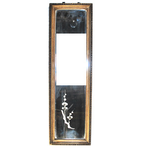 グラビール梅木模様 小凸面鏡付 掛鏡 戦前〜1950年代 日本製 縁面取り加工 木製枠 下部はグラビールで梅木文様の飾り、 上部に施された小凸面鏡に、 顔の全部が写ります。 ◆サイズ◆ w : 15 . 8× h : 53 . 8 cm ◆状態◆ 鏡面に劣化個所、 縁飾り部分や、 裏板ベニヤに傷みがあります。 \ 3.500 送料-y80 |
