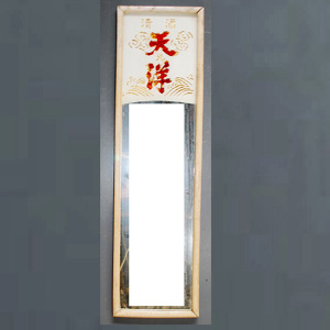 掛鏡 1960〜1970年代 日本製 ( ハート印工芸 ) ◆サイズ◆ 全体 / w : 18 . 5 × h : 60 cm 程 鏡面 / w : 15× h : 14 . 5 cm 程 ◆状態◆ 表面擦れキズ、 鏡面上下枠部分に小さな穴があります。 \ 2.800 送料-261