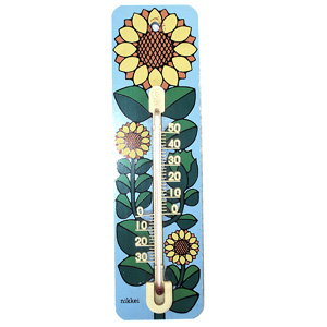 ひまわり図 温度計 木製枠 1970年代 日本製 ( nikkei ) ◆サイズ◆ w : 8 . 3 × h : 30 . 3 cm ◆状態◆ まずまず良好。 \ 800 送料-251