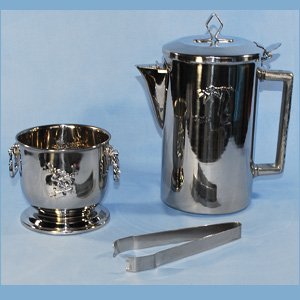 ナイトセット うわさ 梅と竹のち出し模様が施された 和洋折衷秀品! 18-8 ステンレス製 1970年代 日本製 ( 77 ) 未使用品 元箱付 "セット内容 " ミニウォ―タ―ポット アイスペール アイストング ◆サイズ◆ ( 持ち手及び蓋を含まず最大部分 ) アイスペール / w : 10 . 6 × h : 9 . 7 cm 程 水差し / w : 11 . 4 × h : 18 . 6 cm 程 ◆状態◆ まずまず良好です。 \ 4.500 送料-y80 |