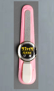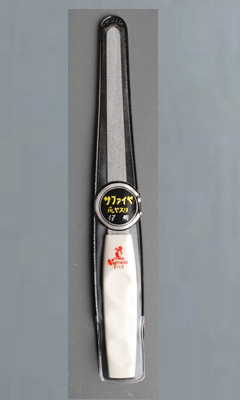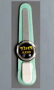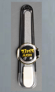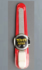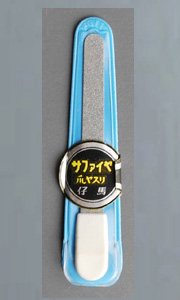 サファイヤ宝石の堅くて鋭い微粒子が ヤスリになっていますので、爪が裂けたり割れたりせず 永久的に使える最も完全で衛生的な 爪の手入れ用具です。 1960〜1970年代 日本製 ( 仔馬印 ) 未使用品 ケース付 送料-121