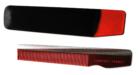 サンスター パンチ @ 特殊合金ハイブライトを使用していますので光沢があります。 A 高熱にたえ、ドライヤーに最適です。 B いかなる整髪料にもおかされません。 販売元 サンスター歯磨株式会社 ケース樹脂製
