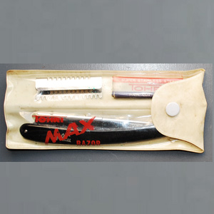 5032a03 床屋剃刀 替刃式 TOHRI MAX 替刃式 替刃 5 枚 / スキ用金具付 樹脂製柄 本体 スチール製 1960〜1970年代 日本製 未使用品 ◆サイズ◆ 刃先部分:61cm 程 伸ばした上体 : 24 . 8 ( 内柄部分 14 . 5 ) cm 程 ◆状態◆ 特に問題なく、まずまず良好です。 \ 3.500 送料-121