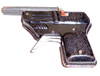 ブリキピストル 「CROWN」 4363 ![]() 弾倉に平玉火薬を装填して鳴らすタイプ、 銃身にロケット図などがプレスで描かれています。 1950〜60年代 USED品。 ◆サイズ◆ 14 . 8 × 9 cm 程 ◆状態◆ サビがありますが、引き金は使えます。 但し、弾倉部分は回りません。 \800 送料-131 |