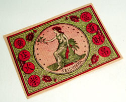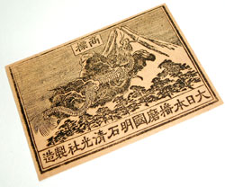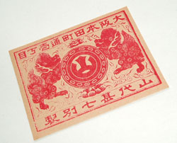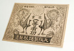 掲載品はレプリカ等ではなく、 すべて明治から大正にかけて制作された 当店保障のオリジナル品です。 送料-011 尚、在庫のあるラベルの画像は、在庫中の見本ですので、 実際の物と同一ではありません。 当時の印刷事情により、 図柄の僅かな部分の違いなどがあります。 叉、僅かな縁の傷みのなどもある場合がございます。 |