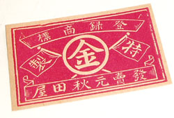 掲載品はレプリカ等ではなく、 すべて明治から大正にかけて制作された 当店保障のオリジナル品です。 送料-011 尚、在庫のあるラベルの画像は、在庫中の見本ですので、 実際の物と同一ではありません。 当時の印刷事情により、 図柄の僅かな部分の違いなどがあります。 叉、僅かな縁の傷みのなどもある場合がございます。 |