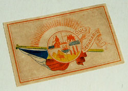 | m0488 「丸紋章と旗」 \200 (在庫2) ◆サイズ◆ 5.7×3.5p程 ◆状態◆ 多少シミがあります。 |