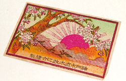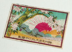 | m0528 「旭日と桜/神戸 直木政之助謹製」 \400 (現品限り) ◆サイズ◆ 5.5×3.5p程 ◆状態◆ シワ及び上縁にインク汚れがあります。 |
