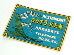 | m0211 老舗広告名品!函館「五島軒」 売却済み ◆サイズ◆ 5.6×3.7p程 ◆状態◆ 特に問題なく、まずまず良好です。 |