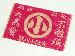 掲載品はレプリカ等ではなく、 すべて明治から大正にかけて制作された 当店保障のオリジナル品です。 送料-011 尚、在庫のあるラベルの画像は、在庫中の見本ですので、 実際の物と同一ではありません。 当時の印刷事情により、 図柄の僅かな部分の違いなどがあります。 叉、僅かな縁の傷みのなどもある場合がございます。 |