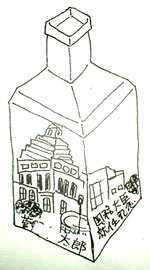 菅野○太郎 国務大臣就任記念花瓶 国会議事堂の絵が のぼりつめた喜びを表しています。