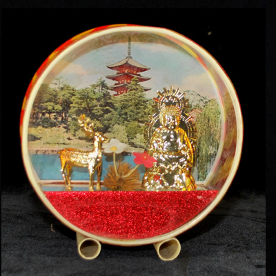 昭和レトロ ガラス箱土産 硝子箱の中からのぞく、遠ほい黄泉の国・・・。 硝子箱の中に、その土地々のイメージを瞬時に閉じ込めるかのよう、 気抜け感や間抜け感、余りにもとも思えるシンボル感が 肩肘を張らずホットさせてくれる。 面白味であれ、ピシッときめてやろうなどとゆうような思惑はどこにも感じられない。 ” カッコよくなくても別にいいんですよぅ 〜。” ちゅう感じが素適で、 人と比べてどっちがカッコイイかを競うよな この重苦しい世界から、 幸せな黄泉の国を垣間見るよな優しさを感じさせてくれる・・・。 |