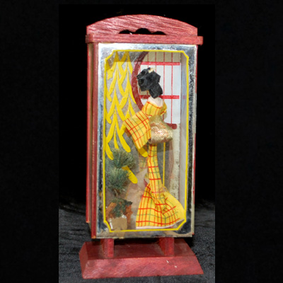 1001a04 ![]() ![]() 前面は硝子、背面は鏡で、側部と底部はセルロイド製 ◆サイズ◆ w : 11 ×d : 4 . 2 × h : 12 cm 程 ◆硝子箱状態◆ 割れや欠けは見受けられません。 \600 送料-y60 |