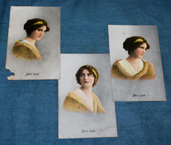 アンティック 彩色絵葉書 「Blue eyes 」 3種3枚