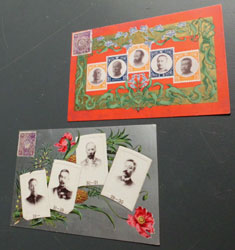| s0077 明治 「台湾始政記念」 2枚 1/2銭菊切手付 \2000 売却済み 型押し及び金彩、 銀彩が施された台湾総督府発行の豪華な絵葉書。 ◆状態◆ 僅かな擦れ汚れがあるもまずまず良好。 |