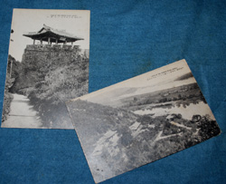 | s0219 「 戦前 朝鮮 平壌 浮碧楼ョ望む/乙密台ョ隔て牡丹台ョ望む 2枚 \700 当時の様子が伺える資料絵葉書です。 ◆状態◆ ヤケ変色、シミがあります。 |