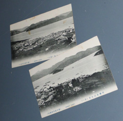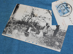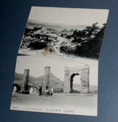 | s0379 戦前 「 大正元年 中国 旅順 白玉山付近 」 3枚 \1200 写真周りが型抜きされ、どれも参拝記念スタンプが押されています。 ◆状態◆ まずまず良好です。 |