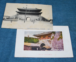| s0217 「 戦前 朝鮮 京城 南大門・東小門 」 2枚 \500 未出 当時の様子が伺える絵葉書2名です。 }カラー絵葉書は写真周りが型押しされ、 宛名面に、京城 日之出商行発行の記載があります。 ◆状態◆ 白黒絵葉書はヤケ変色シミ、カラー絵葉書はますまず良好です。 |