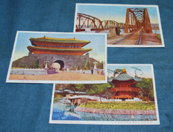 | s0222 「戦前 朝鮮 京城南大門/景福宮香遠亭/龍山漢江鉄橋 」 3枚 \1200 当時の様子が伺えるカラー絵葉書で、 宛名面に、京城 日之出商行発行の記載があります。 ◆状態◆ 少し擦れ汚れがあります。 |