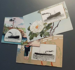「 近海郵船株式会社 備後丸 外国に八銭・・・。」