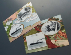 風情のある絵が添えられた美しい絵葉書2枚です。
