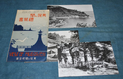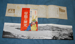 | s0427 戦前 「 屋島の風光 説明書付3枚綴り 」 入袋付3枚 \2800 m 3枚綴りのパノラマ写真で当時の様子が良く伺えます。 甚五郎茶屋特選とあり、説明書に 甚五郎茶屋説明係、末子・静子さんの写真が添えられています。 ◆状態◆ 絵葉書 / まずまず良好です。 入袋 /ヤケ変色、シミがあります。 |