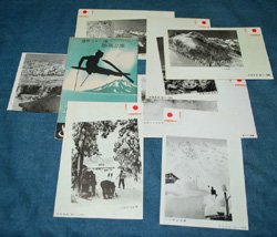 | s0101 国民精神総動員 体位向上 「国際スキー場 妙高高原 温泉とスキー」 入袋付 5枚 \2000 どれも「 国民精神総動員 体位向上 」の標語と日の丸付で、 当時の雰囲気が伺えます。 ◆状態◆ まずまず良好。 |